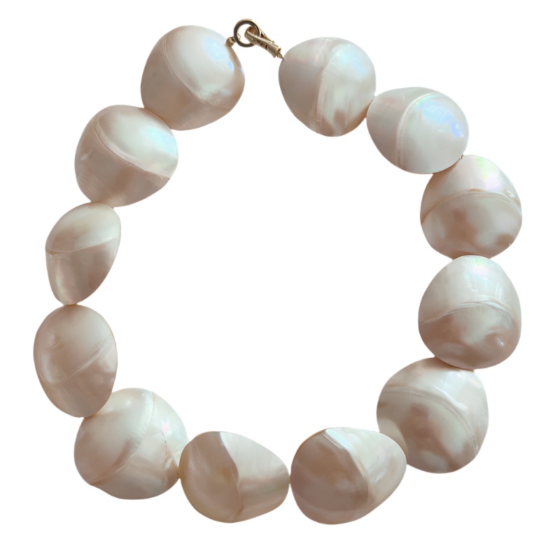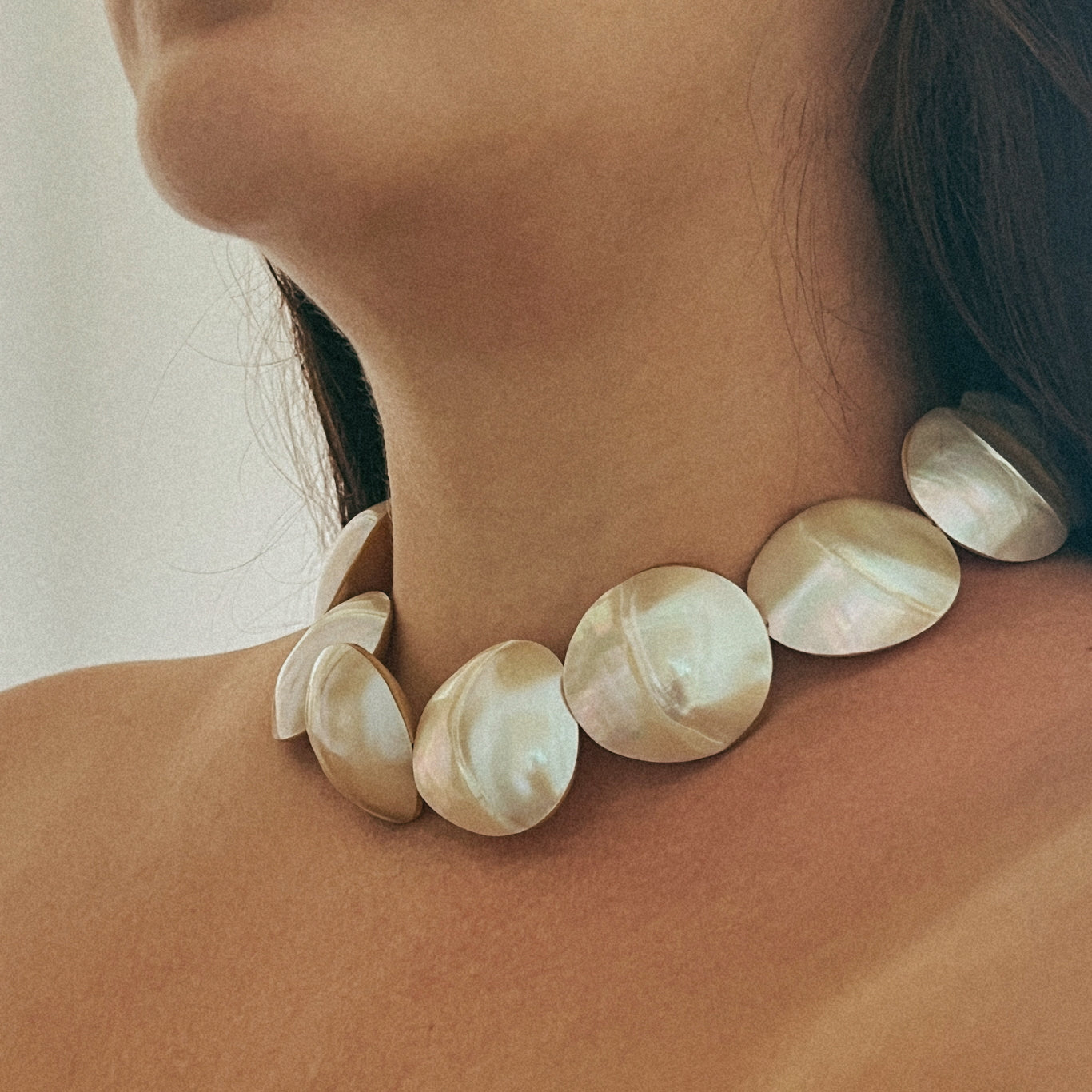 Add a touch of ethereal to your jewelry collection with our 12 / Essence handmade necklace. Featuring gold clasp finishings and an iridescent nautilus shell pendant, each piece is perfectly imperfect. This is one-of-a-kind necklace.