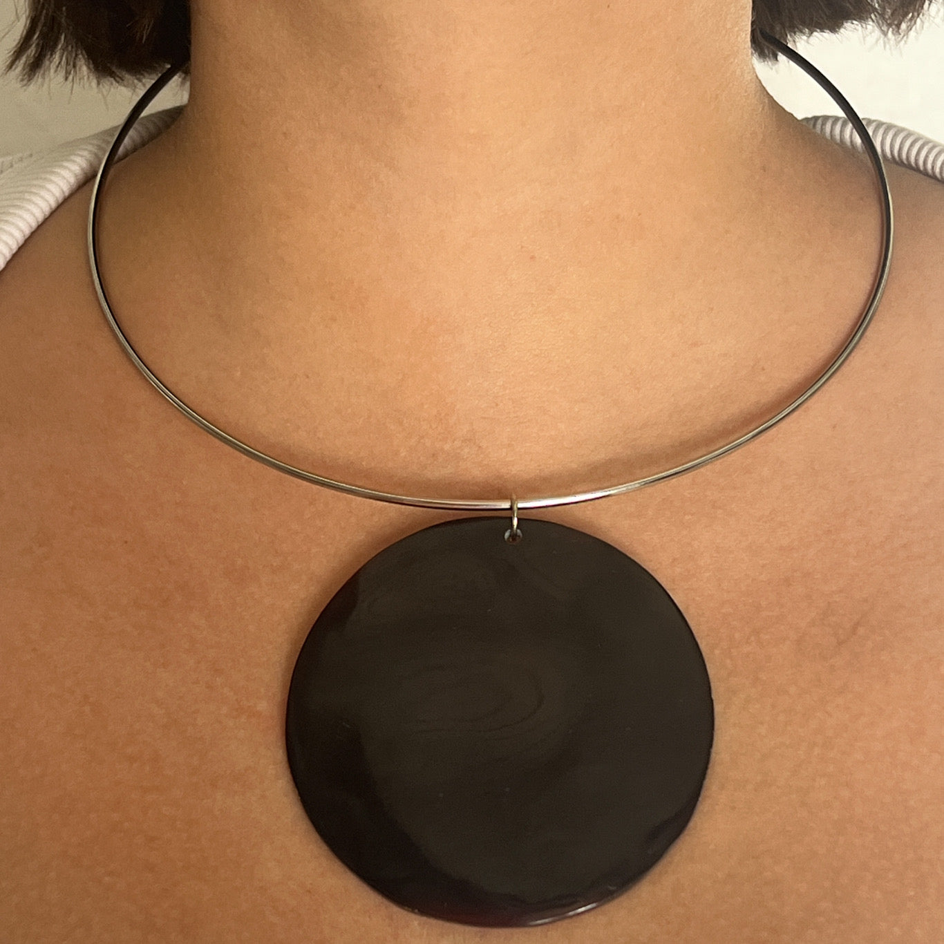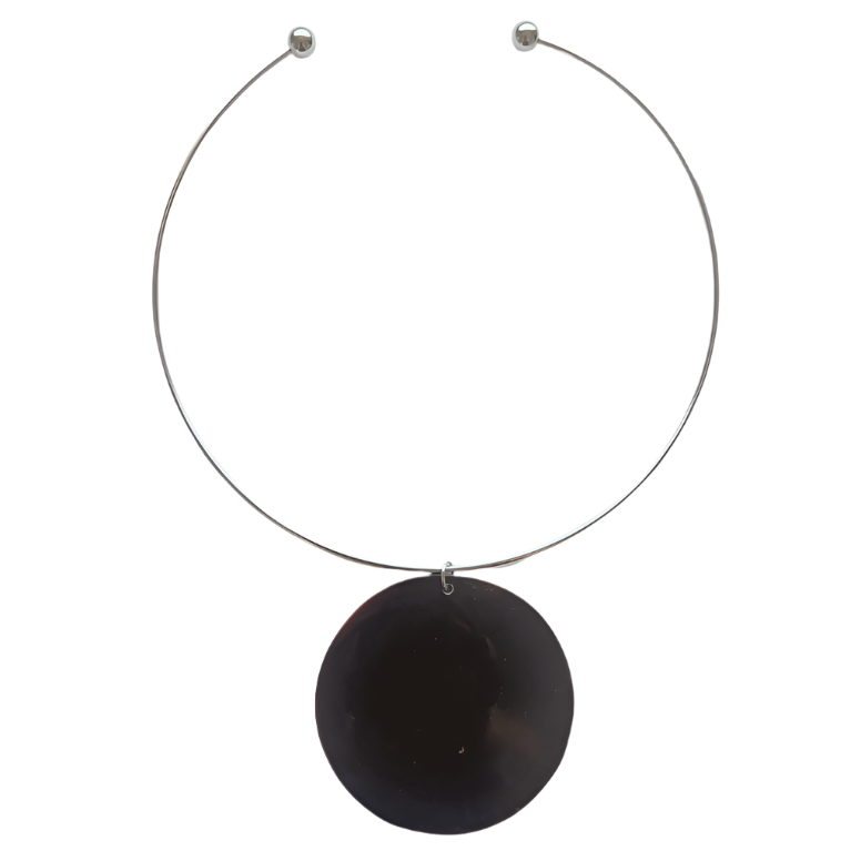 Lucia presents sophisticated allure in solid silver, featuring a delicate sheen and distinctive brown shell pendant. This contemporary choker's adjustable design ensures versatile elegance for every occasion.